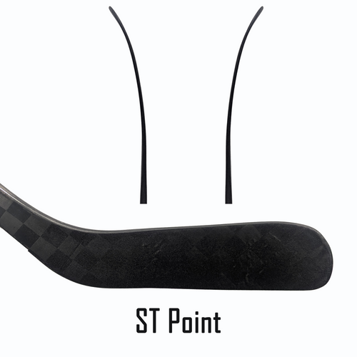 - Courbes exclusives issues des crosses de hockey Pro Stock. La version PRO est noire sur noir sur le manche inférieur.